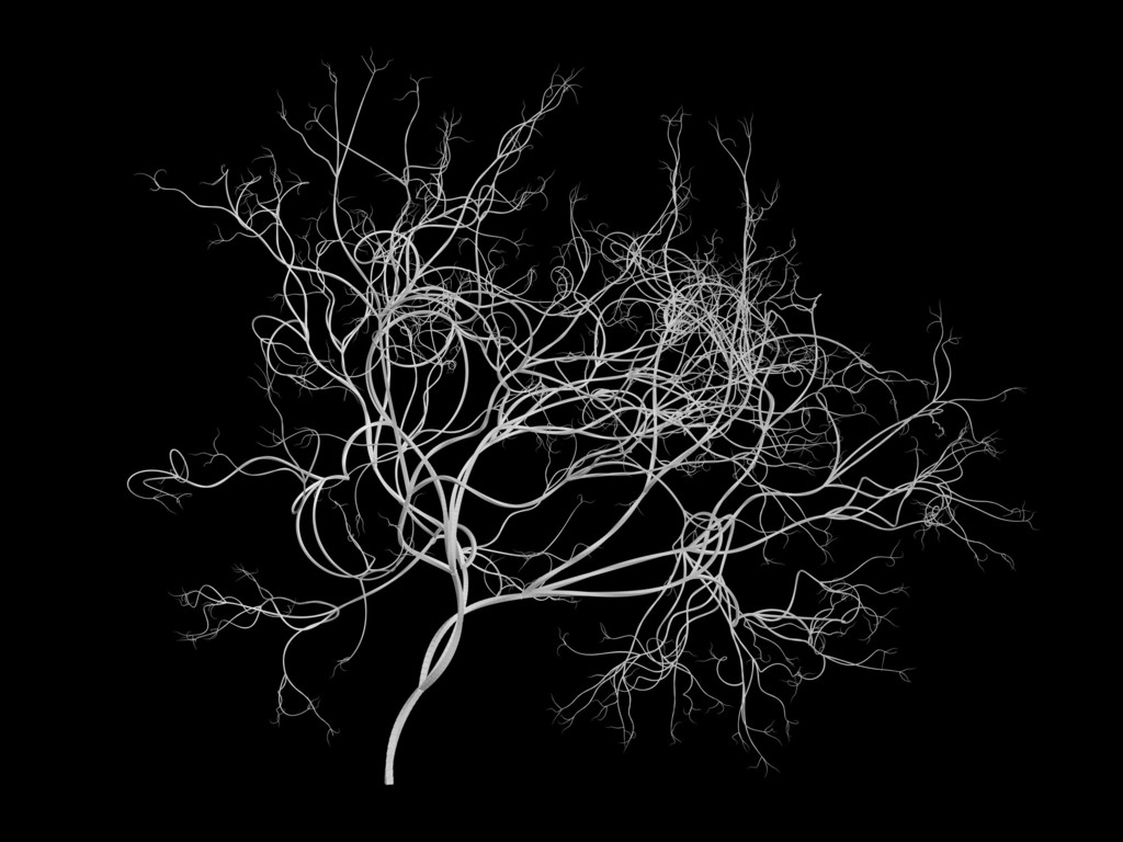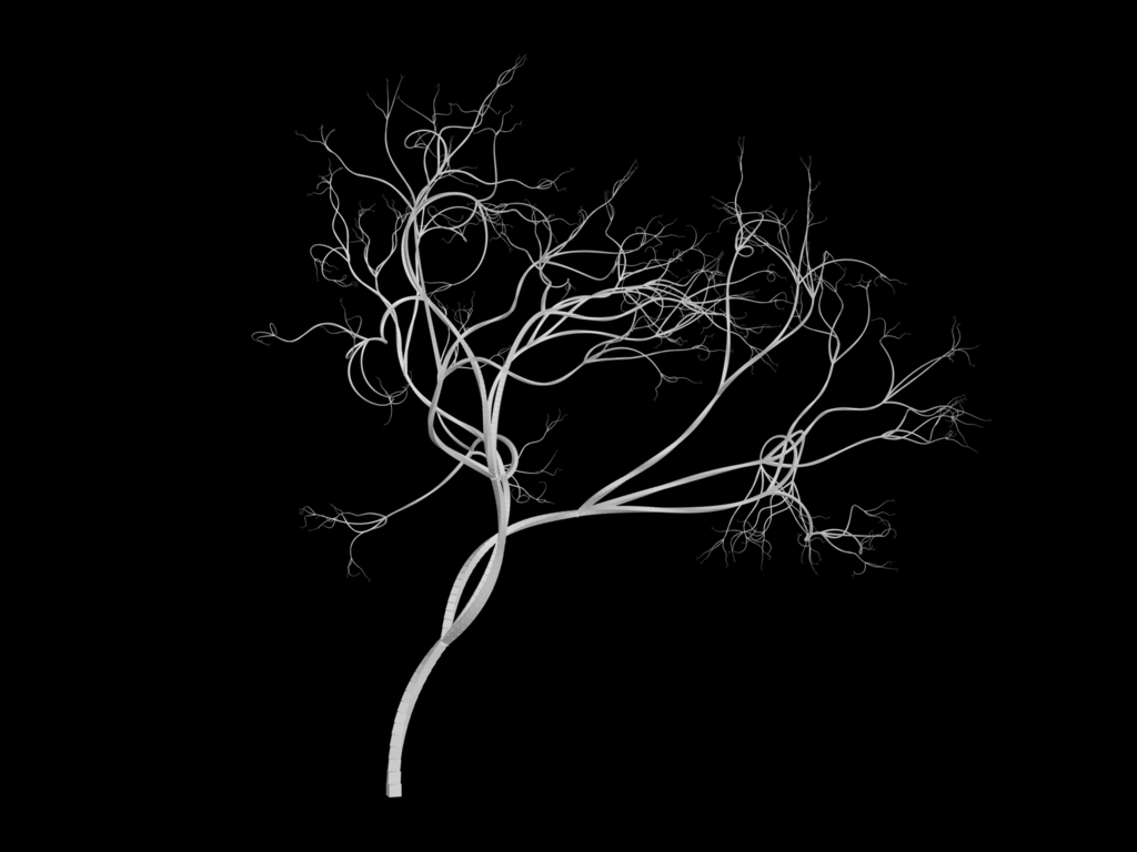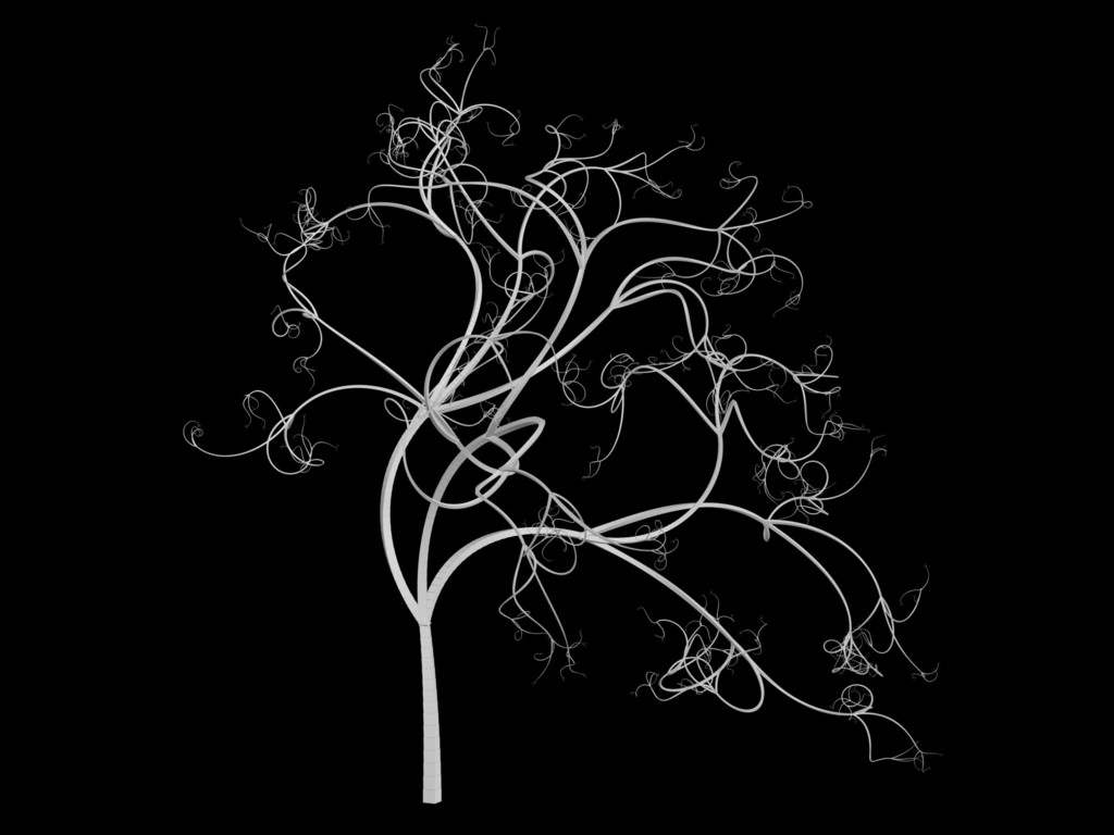 Entre la forme simple de la primitive géométrique et la complexité de l’arborescence, ces images soulèvent les questions d’émergence de la forme, ainsi que les relations entre le virtuel et le naturel.