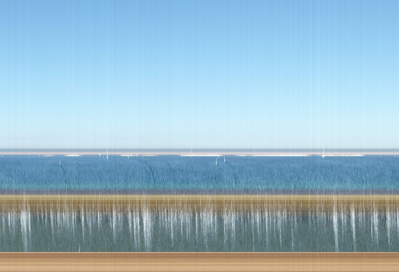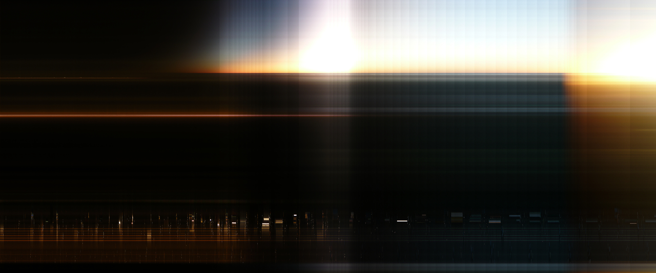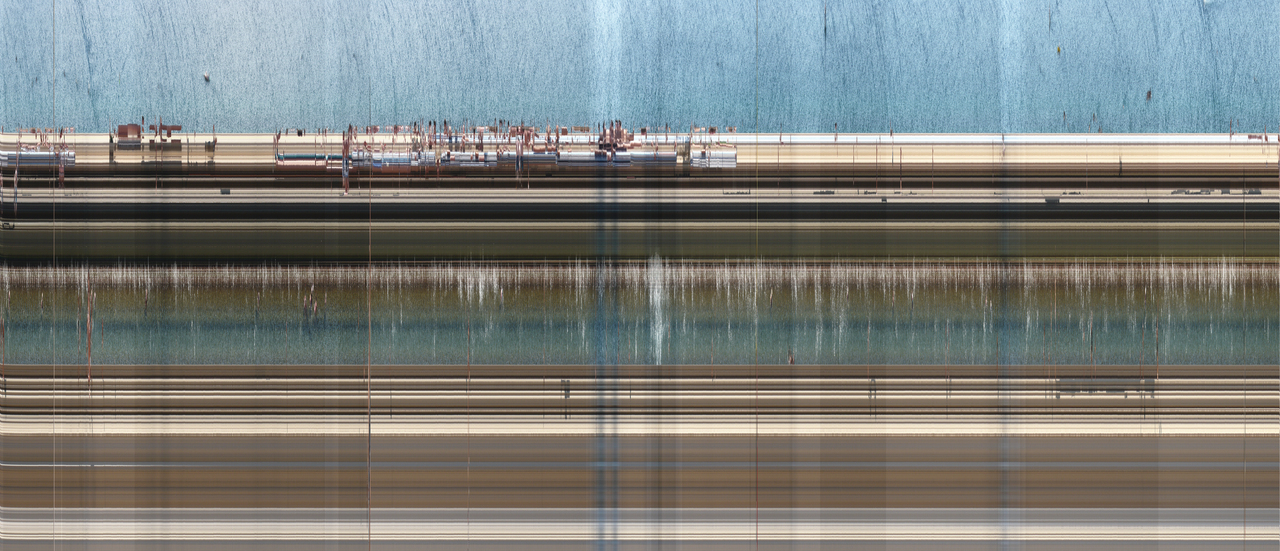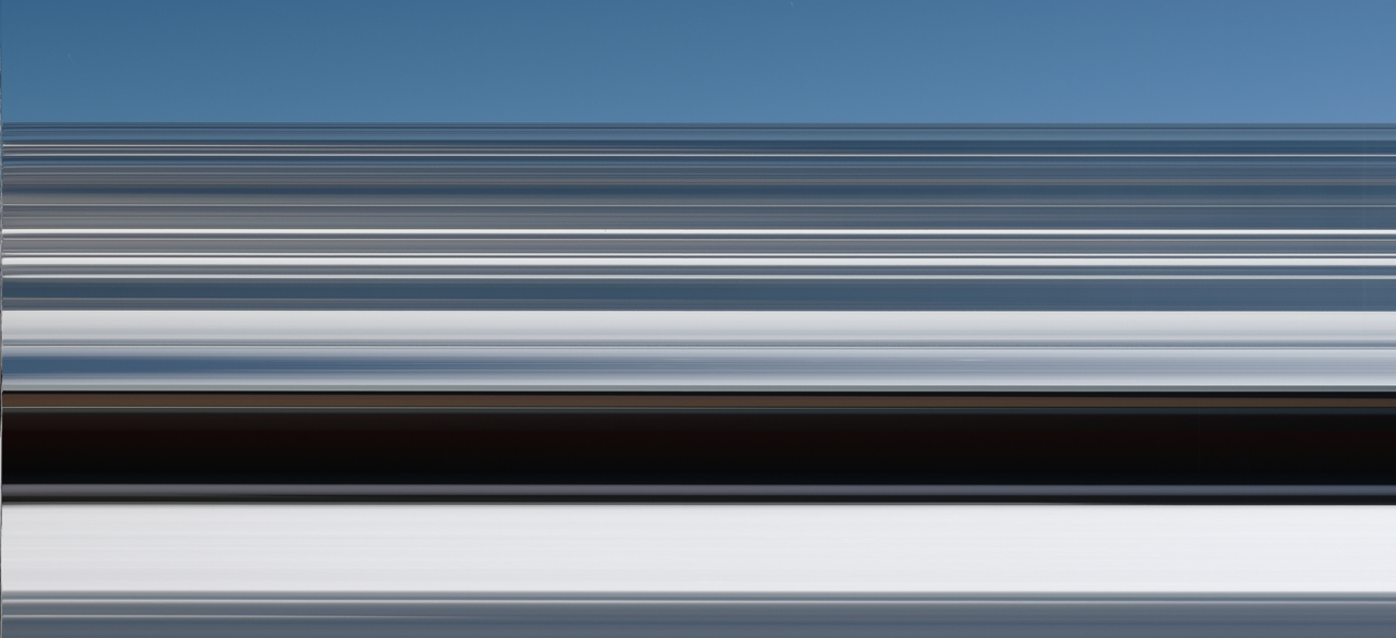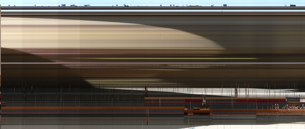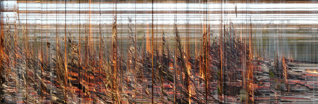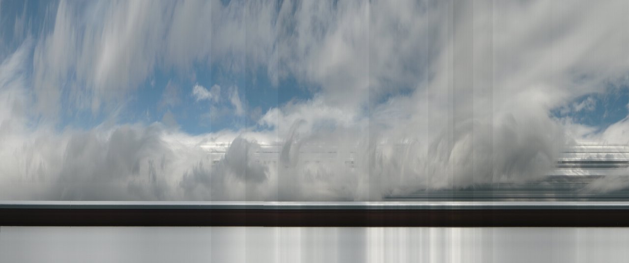 Ici, l’apareil photographique est fixe, mais face à un sujet en évolution. L’assemblage des multitudes de bandelettes issues de photographies d’un même lieu permet de se concentrer uniquement sur l’évolution dans le temps du sujet photographique.