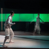 “A travers une mise en relation en temps réel entre le geste des danseuses et le dispositif scénographique, Effet Papillon entend ouvrir de nouveaux territoires à la mobilité des corps.” (Extrait de l’article de Laurent Catala, Musique et Cultures Digitales, janvier/février 2006)