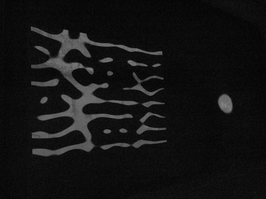 (In) Sub Ordination I is an installation which visualizes the breathing from environmental sounds occuring in the acoustics of the exhibition space.
