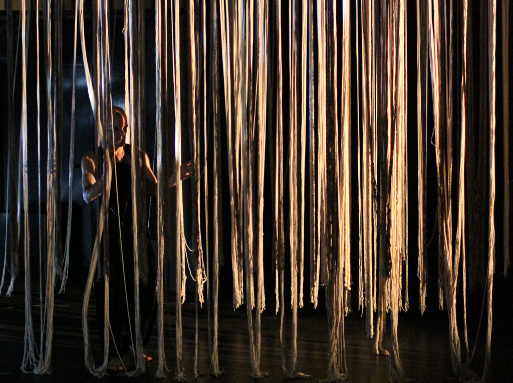A la confrontation entre archaïsme et modernisme, intrinsèque aux textes, répond la mise en œuvre sur scène de moyens allant des plus « artisanaux » (échafaudages métalliques et constructions filaires de la danseuse aérienne, comme une référence fantomatique au cirque), aux plus technologiques : musique purement électronique ou utilisant des instruments hybridés avec l’électronique, musique commandant, voire interagissant sur, la vidéo et la lumière, éclairage à LED.