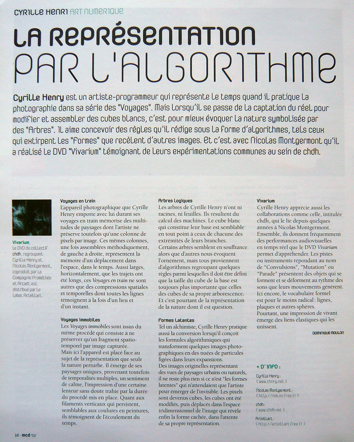 Dominique Moulon, Cyrille Henry - La représentation par l'algorithme, revue MCD, mai-juin 2009, page 12-13