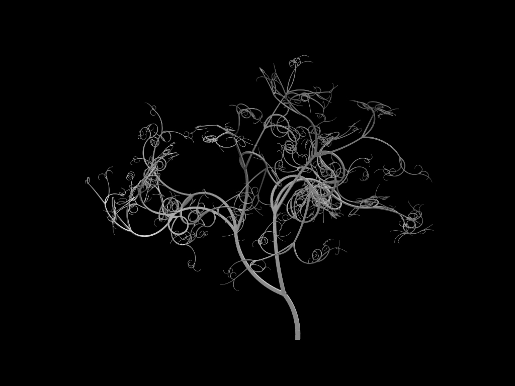 Entre la forme simple de la primitive géométrique et la complexité de l’arborescence, ces images soulèvent les questions d’émergence de la forme, ainsi que les relations entre le virtuel et le naturel.