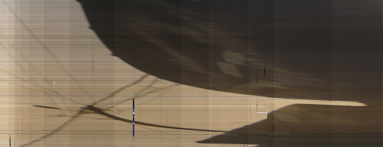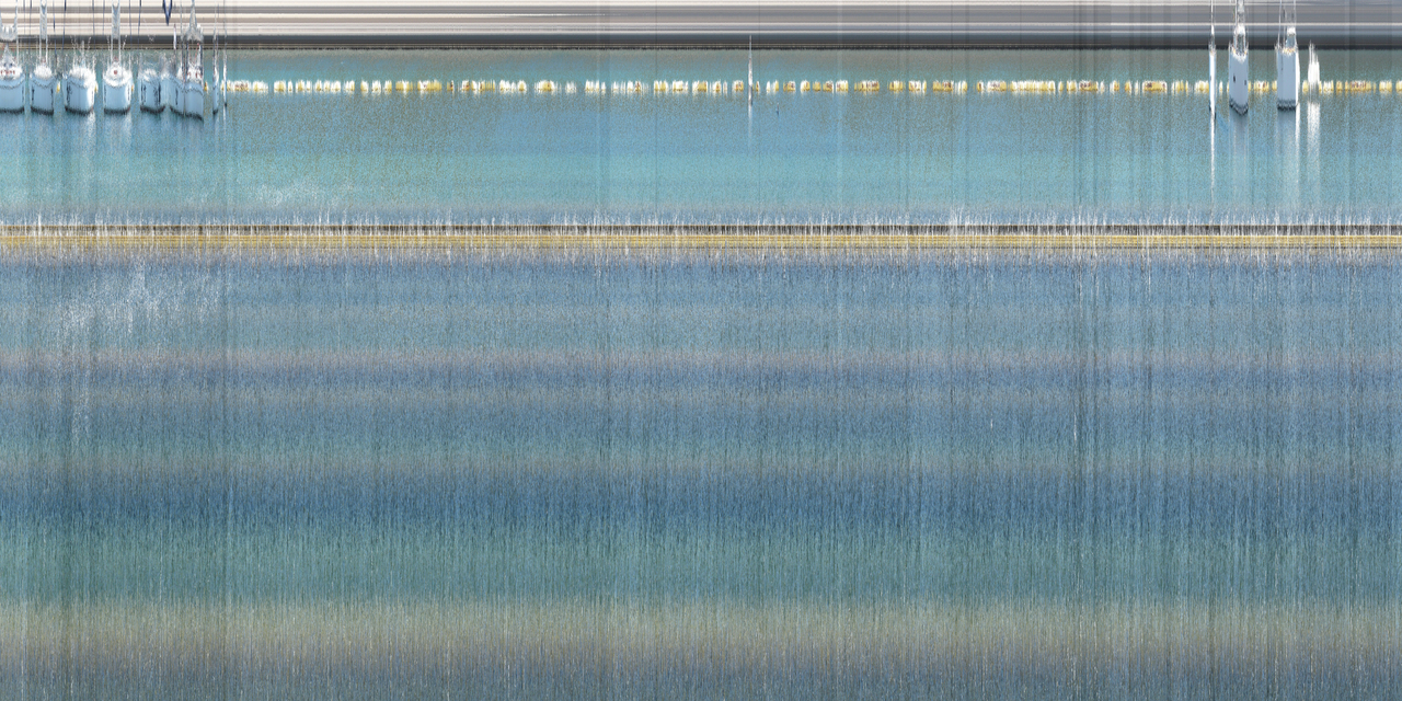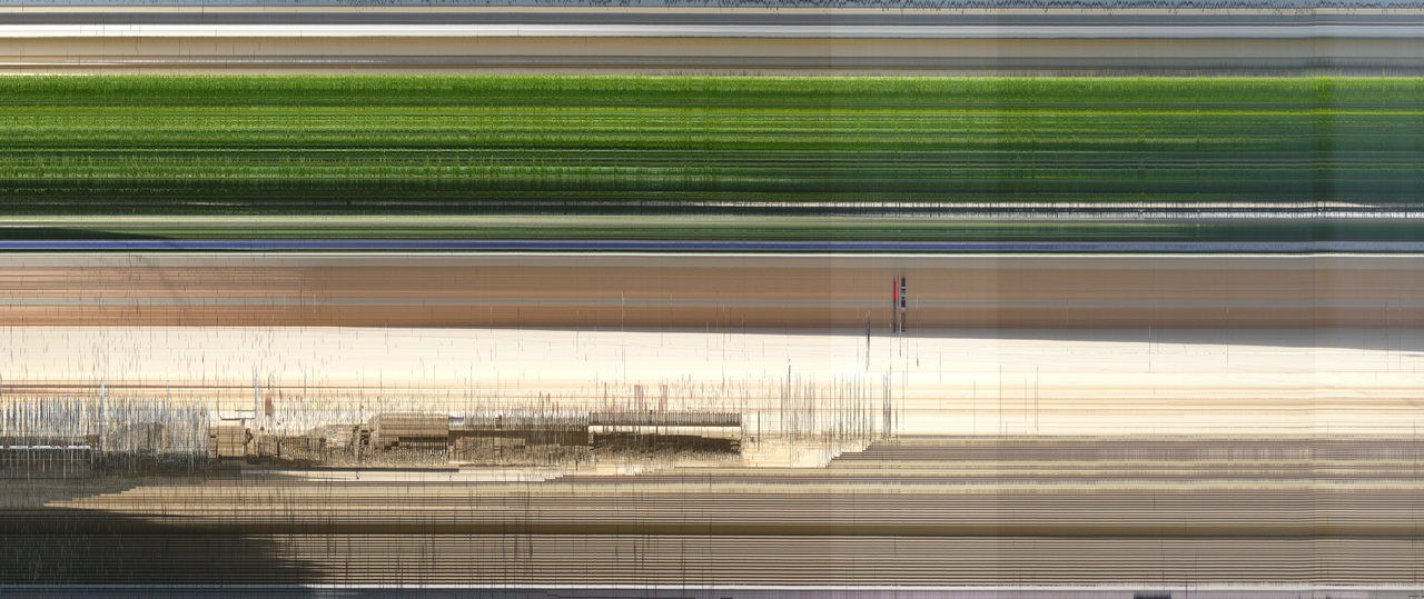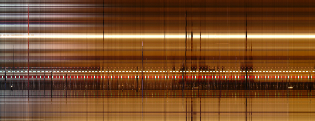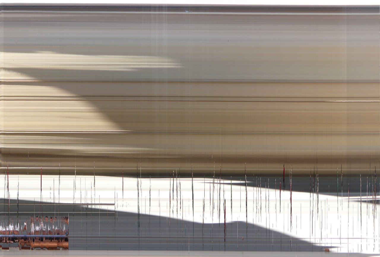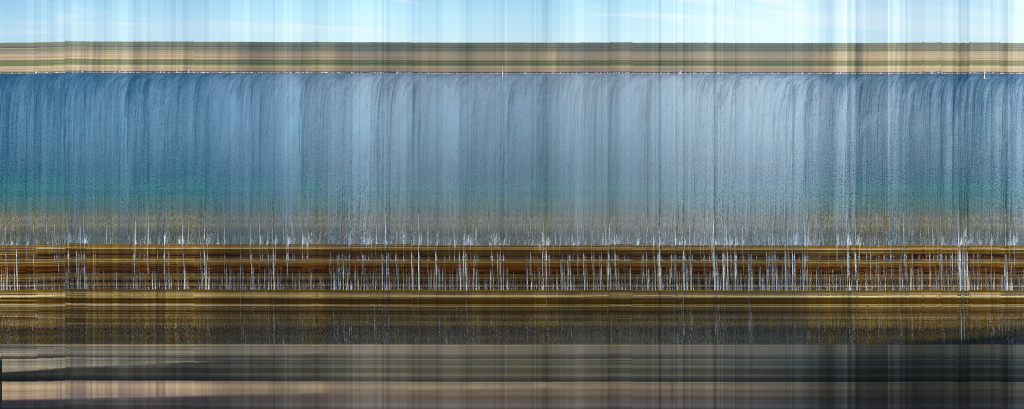 Ici, l’apareil photographique est fixe, mais face à un sujet en évolution. L’assemblage des multitudes de bandelettes issues de photographies d’un même lieu permet de se concentrer uniquement sur l’évolution dans le temps du sujet photographique.
