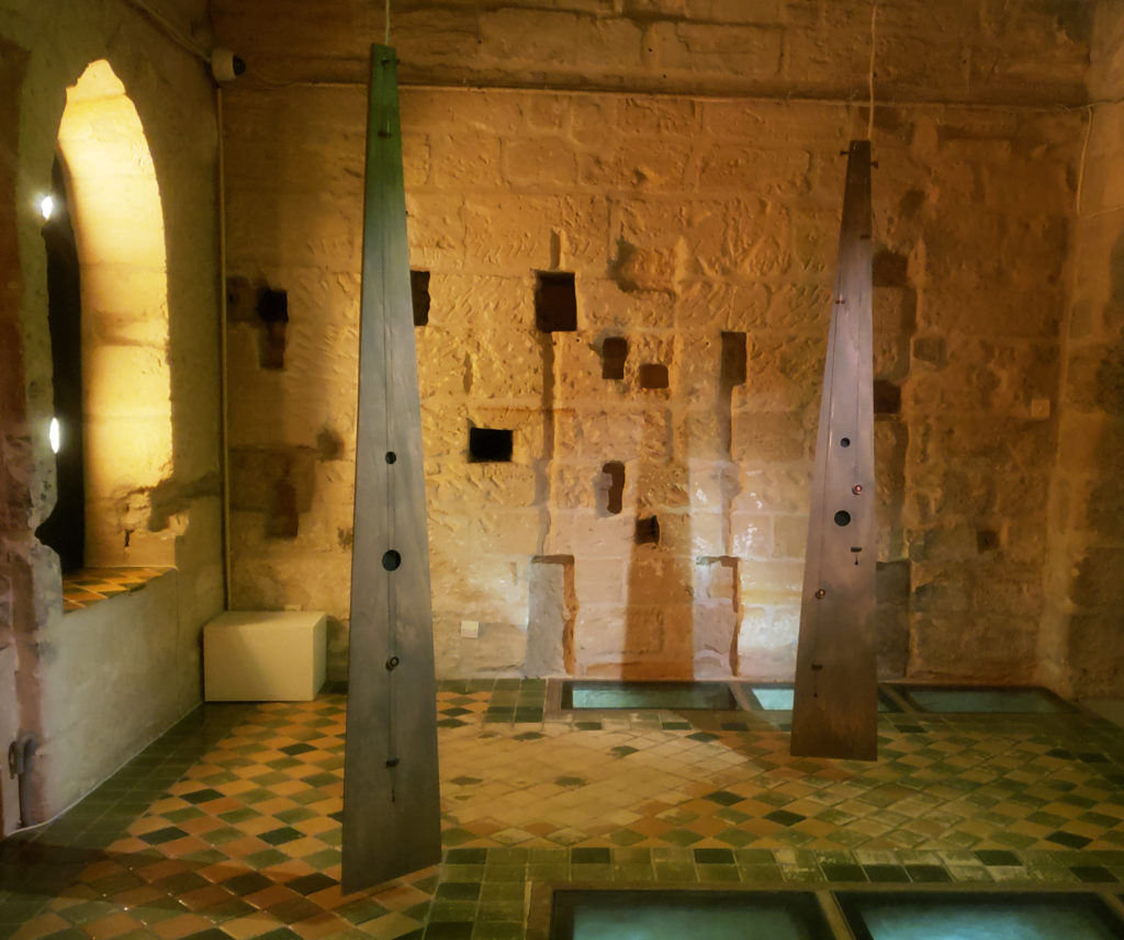 Inspirés des trompettes marines, ces instruments datant du 16ème siècle se jouaient avec un archet. Ici, c’est par un système d’électroaimant que chaque corde produit une note. Réparties sur 3 instruments, ces cordes sont au nombre de 5, comme pour la première gamme pythagoricienne.