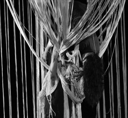 A la confrontation entre archaïsme et modernisme, intrinsèque aux textes, répond la mise en œuvre sur scène de moyens allant des plus « artisanaux » (échafaudages métalliques et constructions filaires de la danseuse aérienne, comme une référence fantomatique au cirque), aux plus technologiques : musique purement électronique ou utilisant des instruments hybridés avec l’électronique, musique commandant, voire interagissant sur, la vidéo et la lumière, éclairage à LED.
