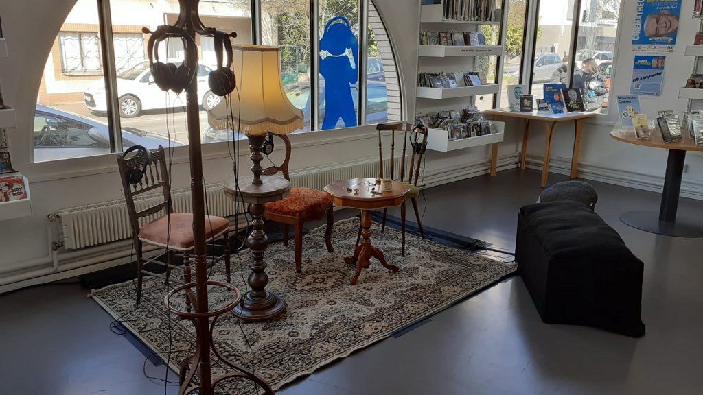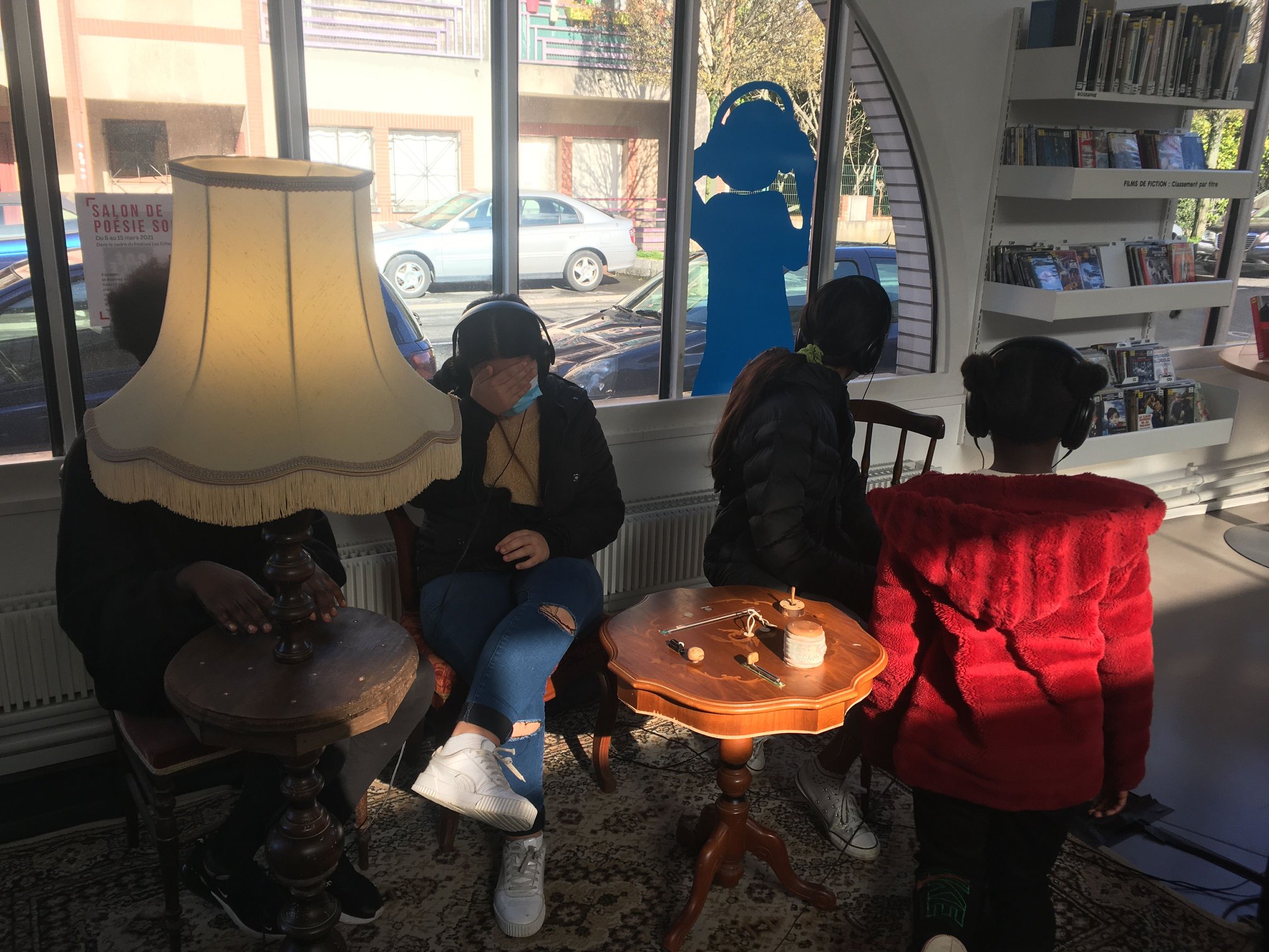 S’asseoir, et écouter des oeuvres poétiques. Voici ce que vous propose cette installation créée par La Muse en Circuit, f(y)=le(x)ique. Un salon d’écoute, des casques, des pédales de déclenchement, un écran tactile. Laissez le choix se faire, le hasard vous guider, et laissez-vous emporter par ces textes et poèmes.